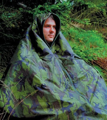 Le Jervenbag MiniHunter est doté de 4 œillets renforcés qui permettent de le suspendre (comme un tarp), de 2 manchons de protection pour les bras, d’un drapeau pour se signaler en cas d’urgence et d’une housse de rangement.