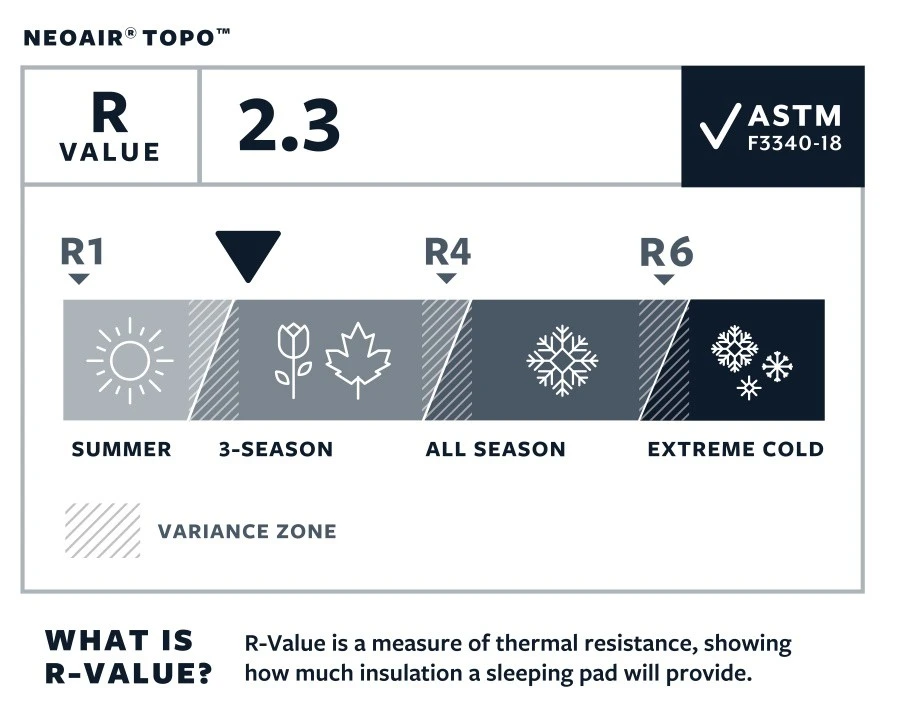 A l’intérieur, la structure WaveCore vous isolera du froid et vous apportera plus de confort qu’un matelas non isolé. La technologie WaveCore est une couche de cloison ondulée à l’horizontale qui ralentit les pertes de chaleur par convection sans prendre de place supplémentaire. R-Value de 2.3 selon la norme internationale ASTM F3340-18.