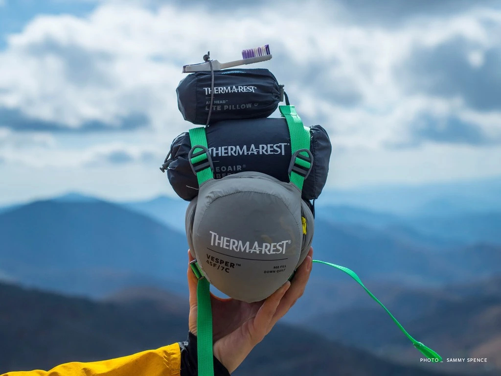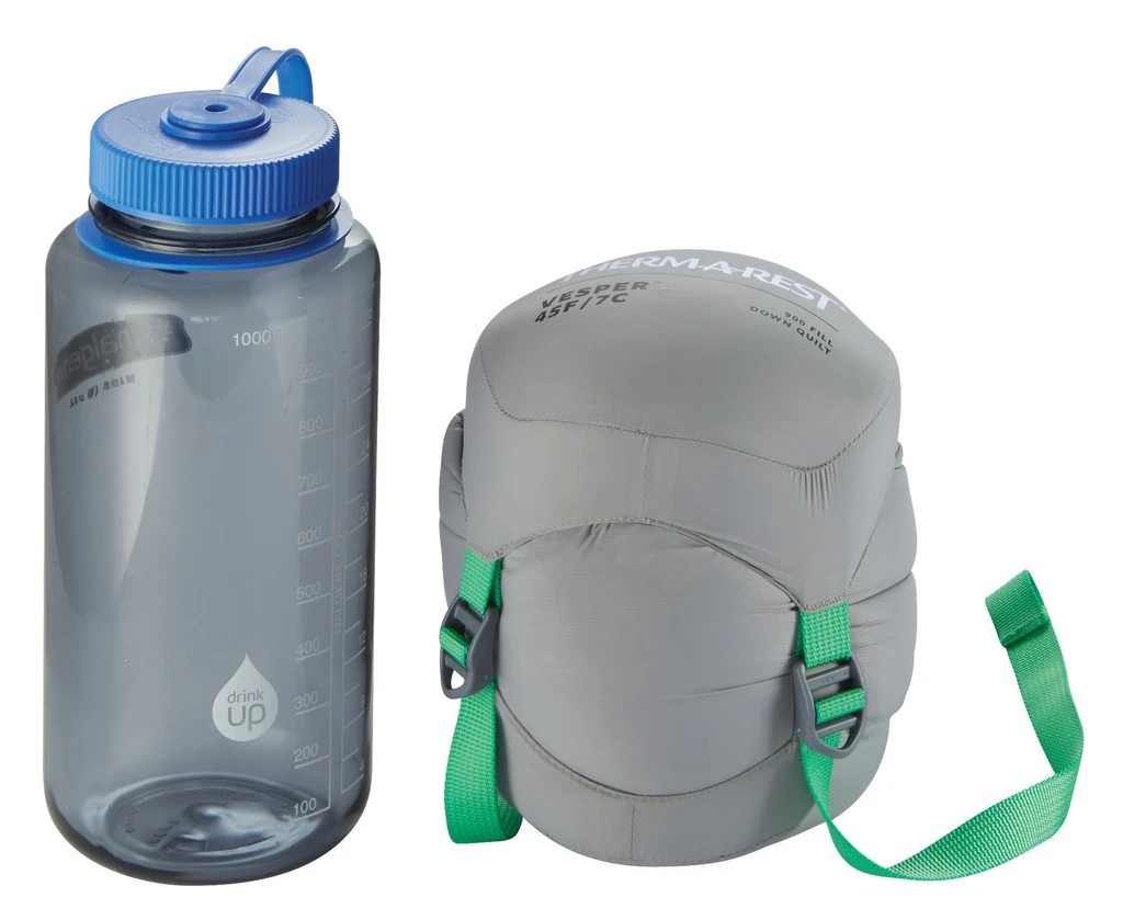 Quilt ultraléger en duvet d’oie pour l’été ou à utiliser en complément d’un sac de couchage. Température confort de 11°C.